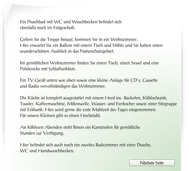 Mit den folgenden Zeilen wollen wir Ihnen unser Ferienhaus vorstellen, das am Rande eines Naturschutzgebietes und in der N�he der Seeve liegt.Das Ferienhaus wurde 1992 an eine vorhandene Doppelhaush�lfte angebaut und im Jahre 2006 renoviert. Es hat einen separaten Eingang.